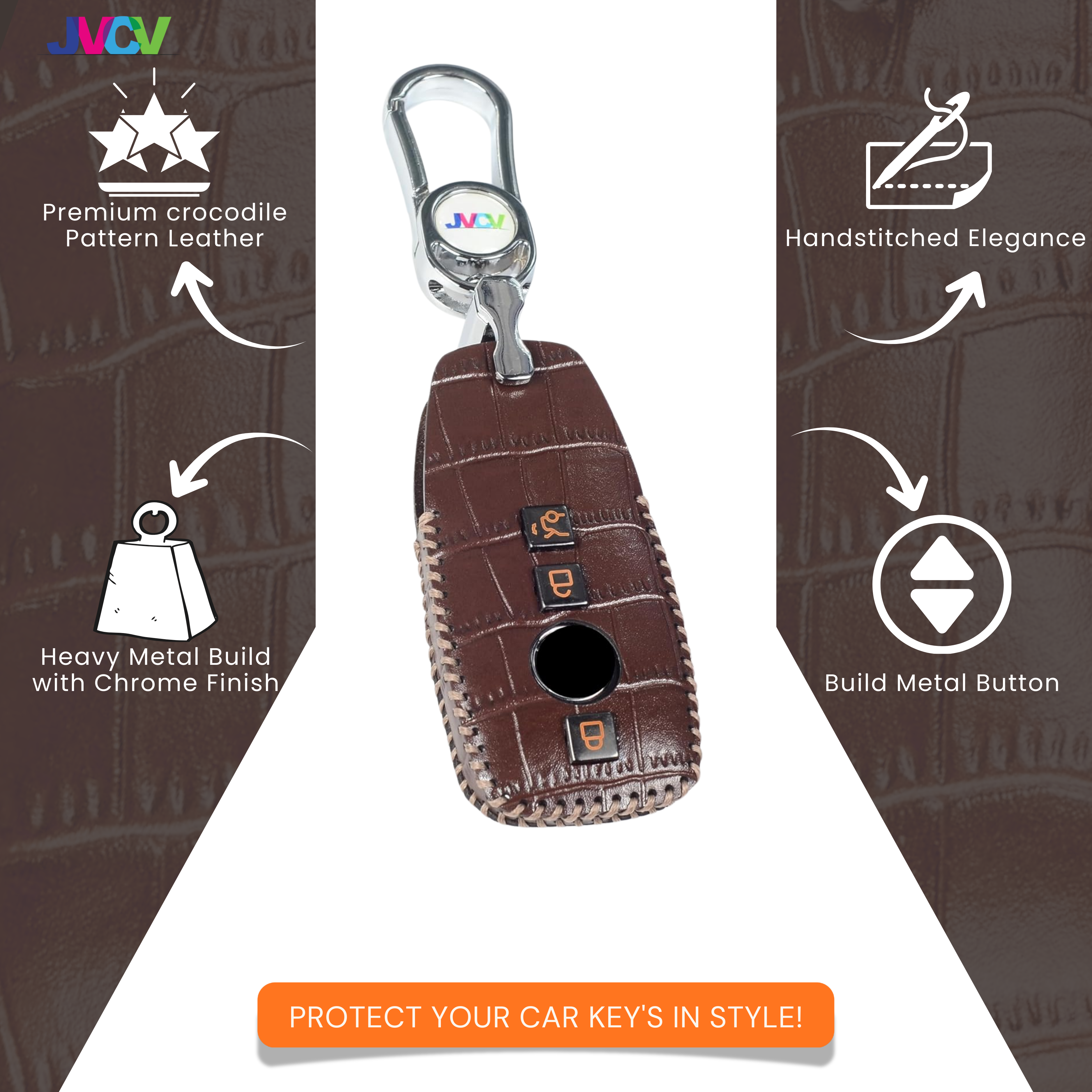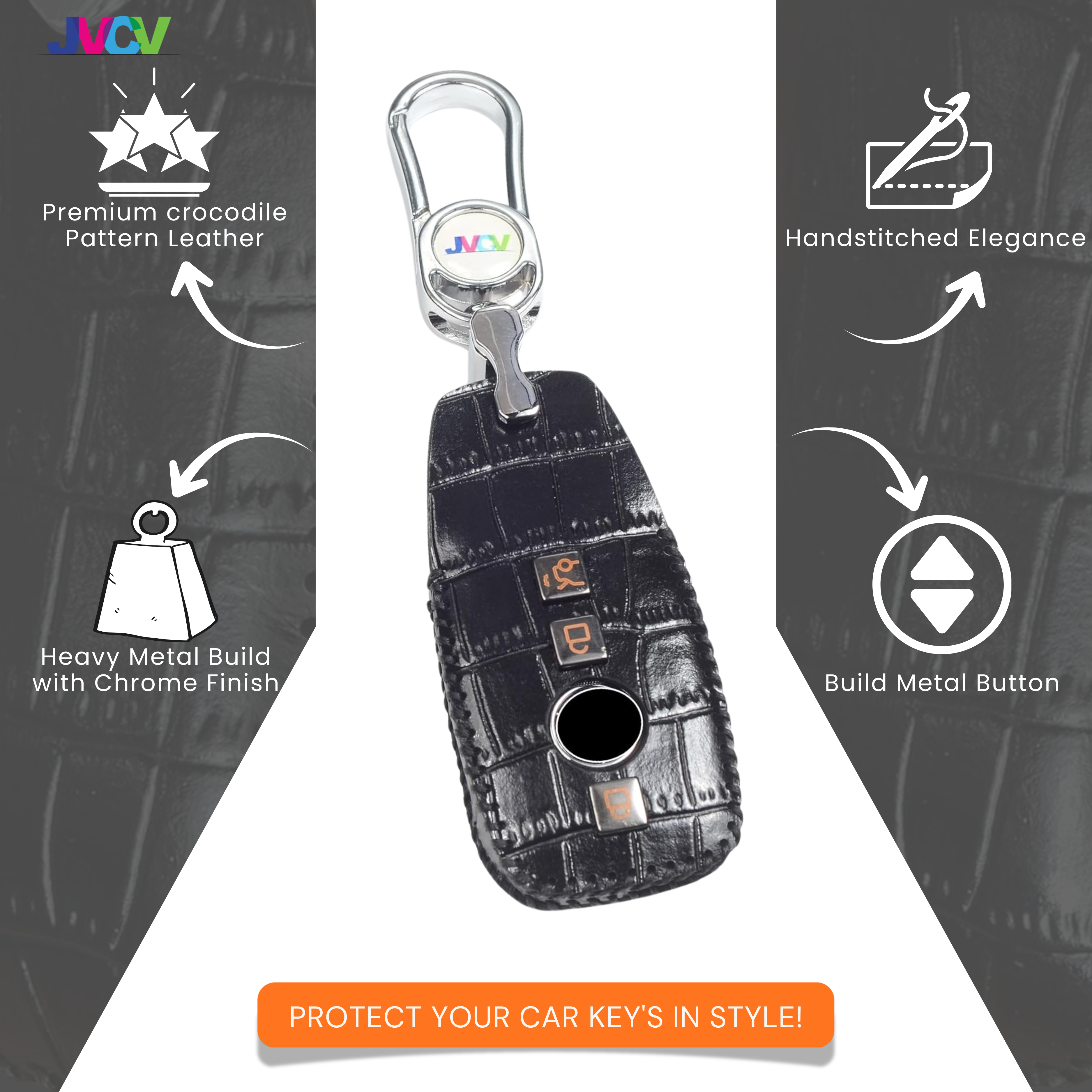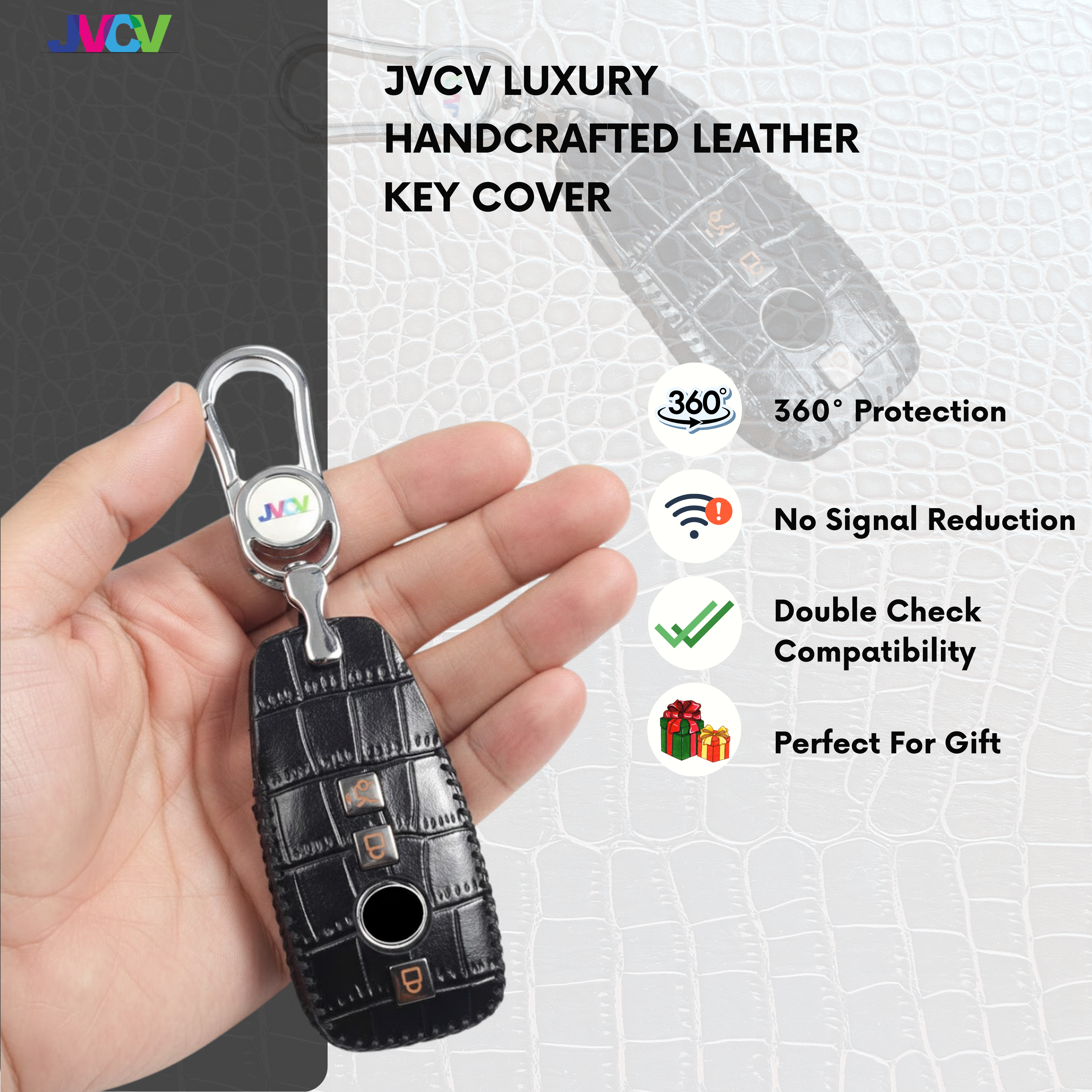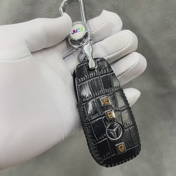 Enhance your Mercedes-Benz smart key with the JVCV® Handmade Leather Crocodile Pattern Key Cover — a perfect blend of luxury craftsmanship and everyday protection.