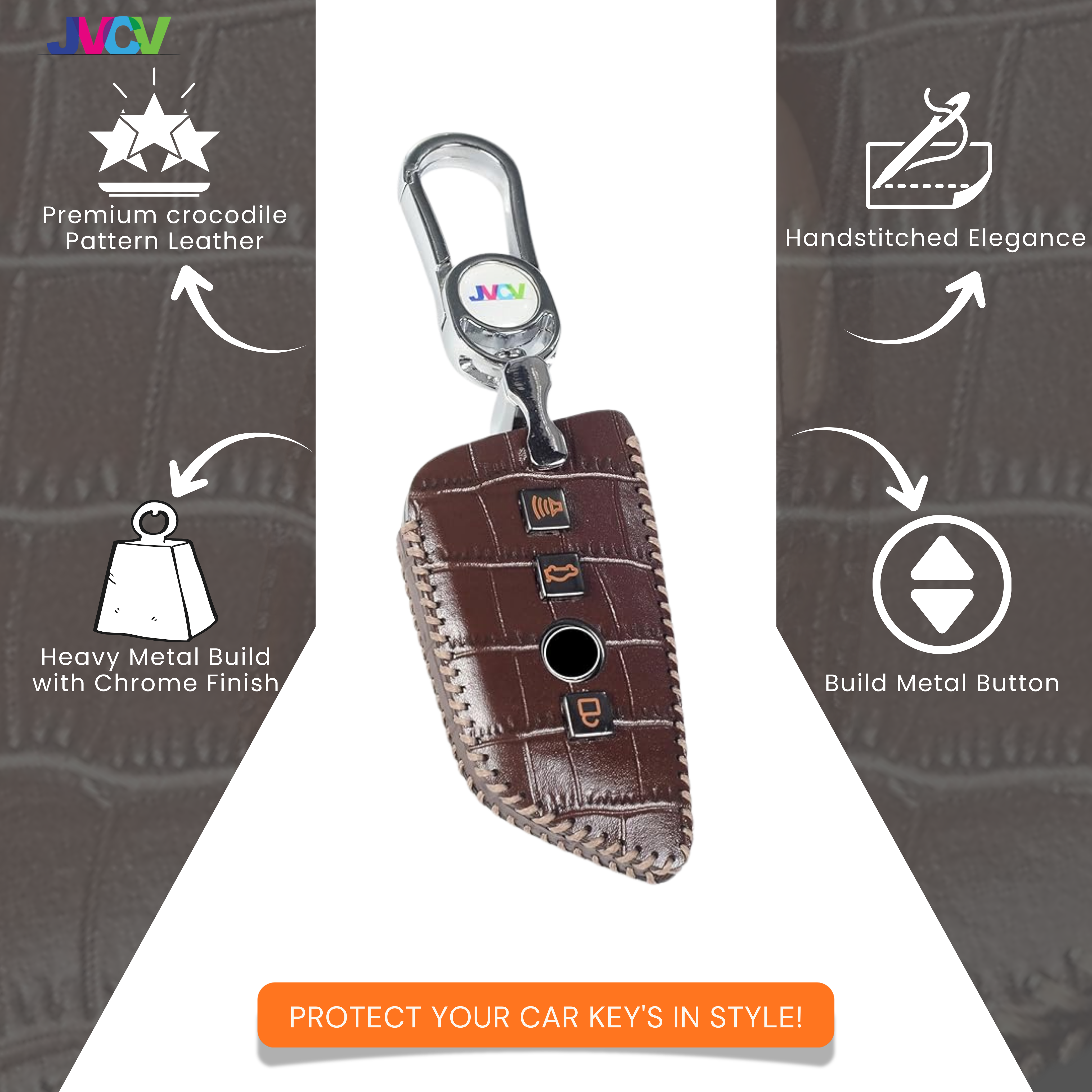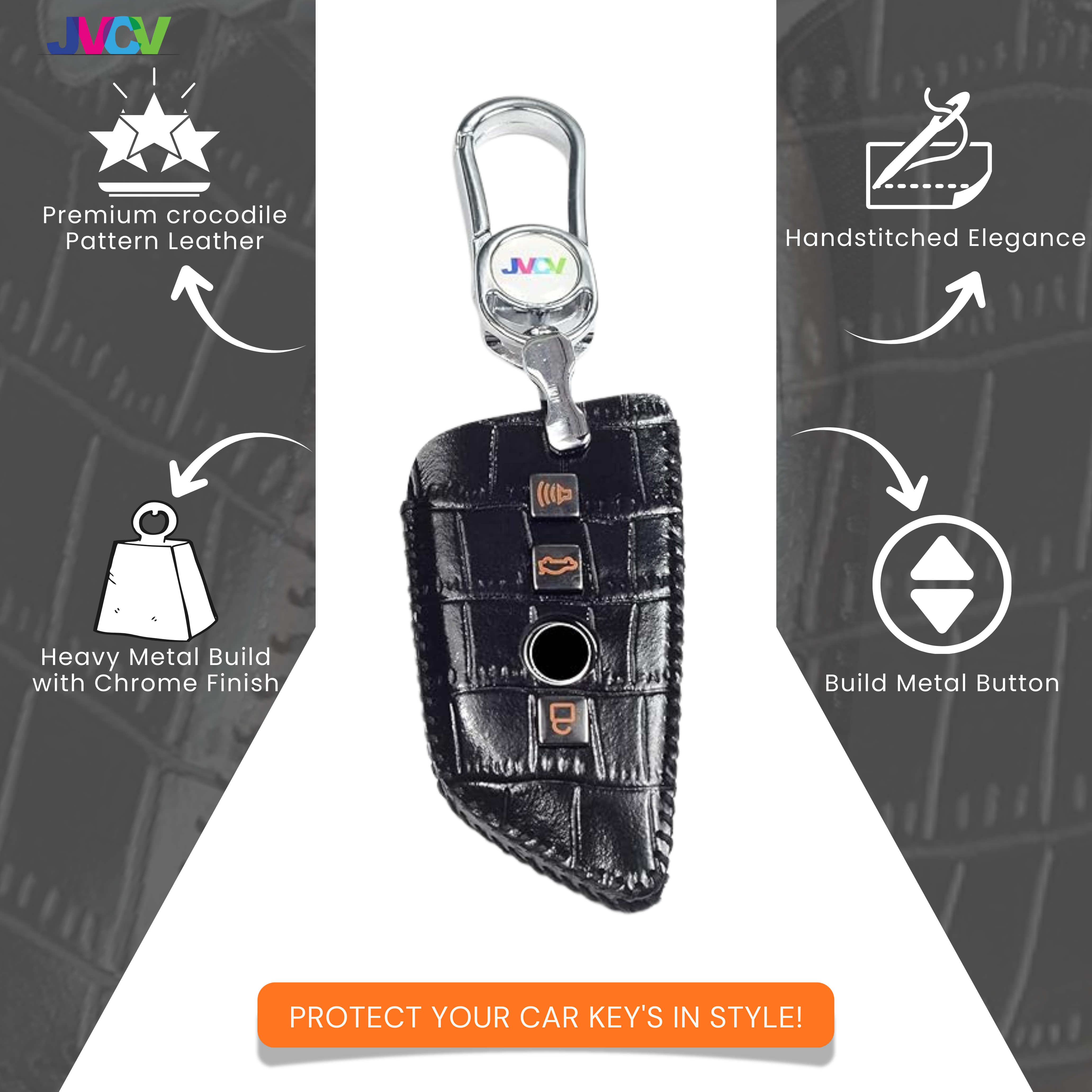 Elevate your BMW driving experience with the JVCV® Handmade Leather Crocodile Pattern Key Cover. Designed for BMW blade smart keys, this premium key case is crafted from soft genuine leather with an elegant crocodile-embossed texture and meticulous hand stitching. It delivers a luxurious look, enhanced grip, and reliable protection for everyday use.