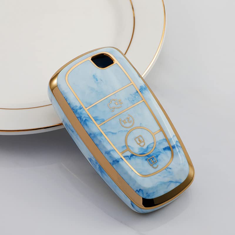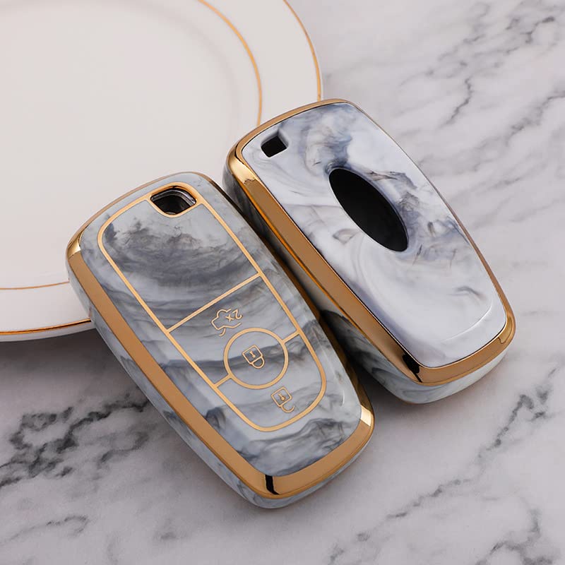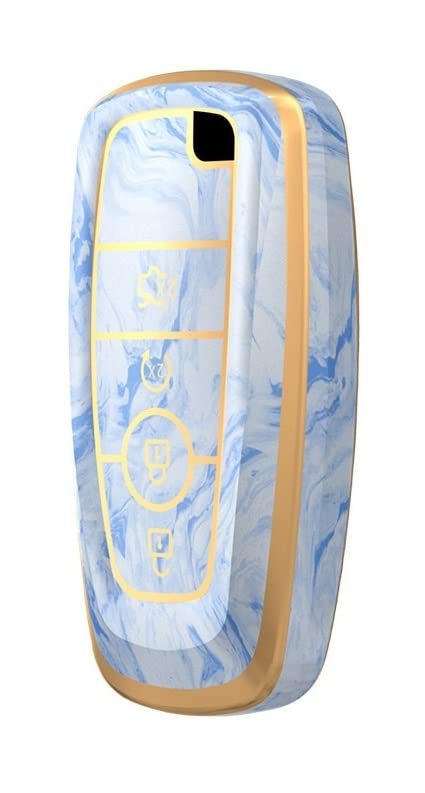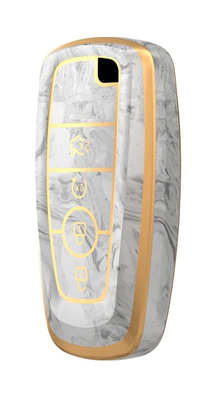 JVCV® Marble Gold Border TPU Key Cover Compatible with Ford Ecosport Aspire Freestyle Endeavour Push Button Start Car Key