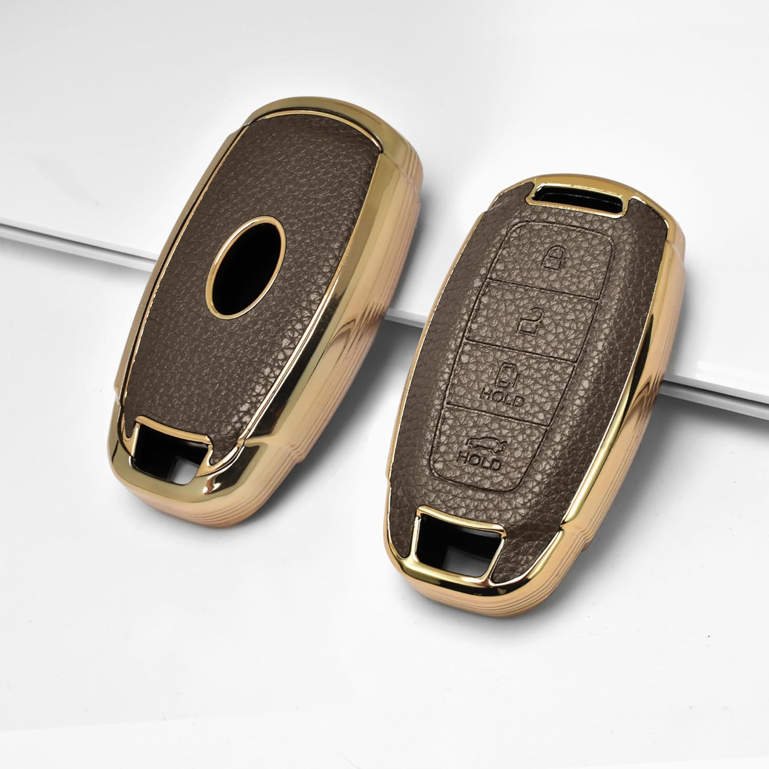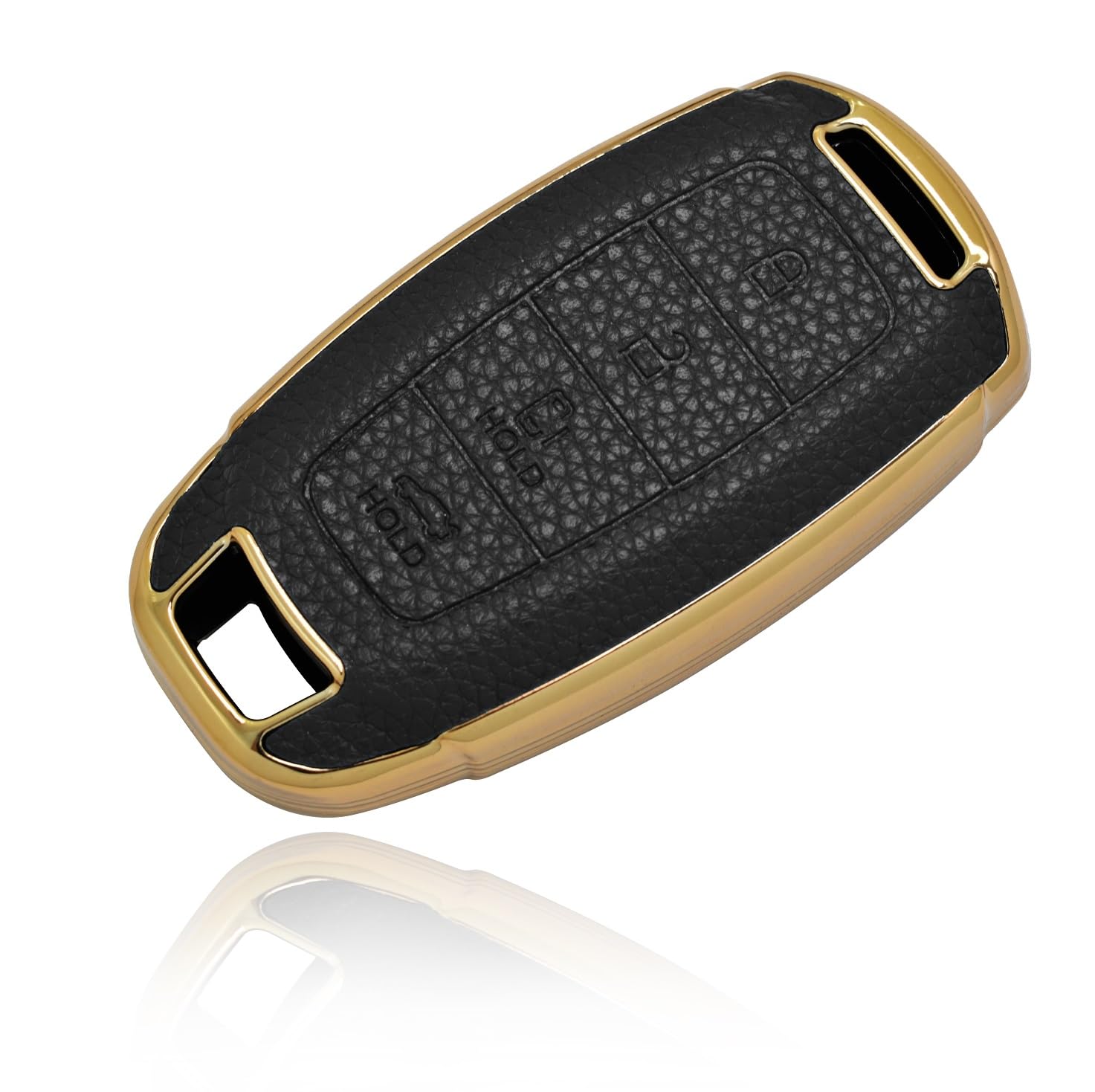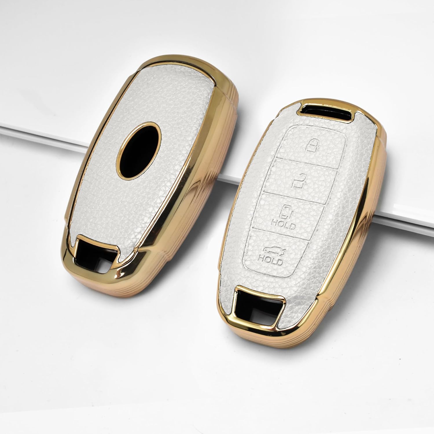 JVCV® Premium Soft Gold Border TPU Leather Pattern Key Cover Compatible with New Hyundai Verna and i20 NLine 4 Button Car Key
