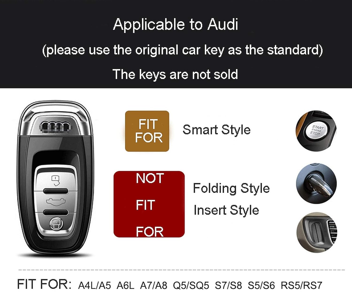 • Compatibility: Fit for Audi A4 S4 B7 B8 A6 A5 A7 A8 Q5 S5 S6 Q7 smart key. Before buying please make sure your key shape is same as the key in our photo. This is not a universal key cover. If you are not sure, please contact us before buying.