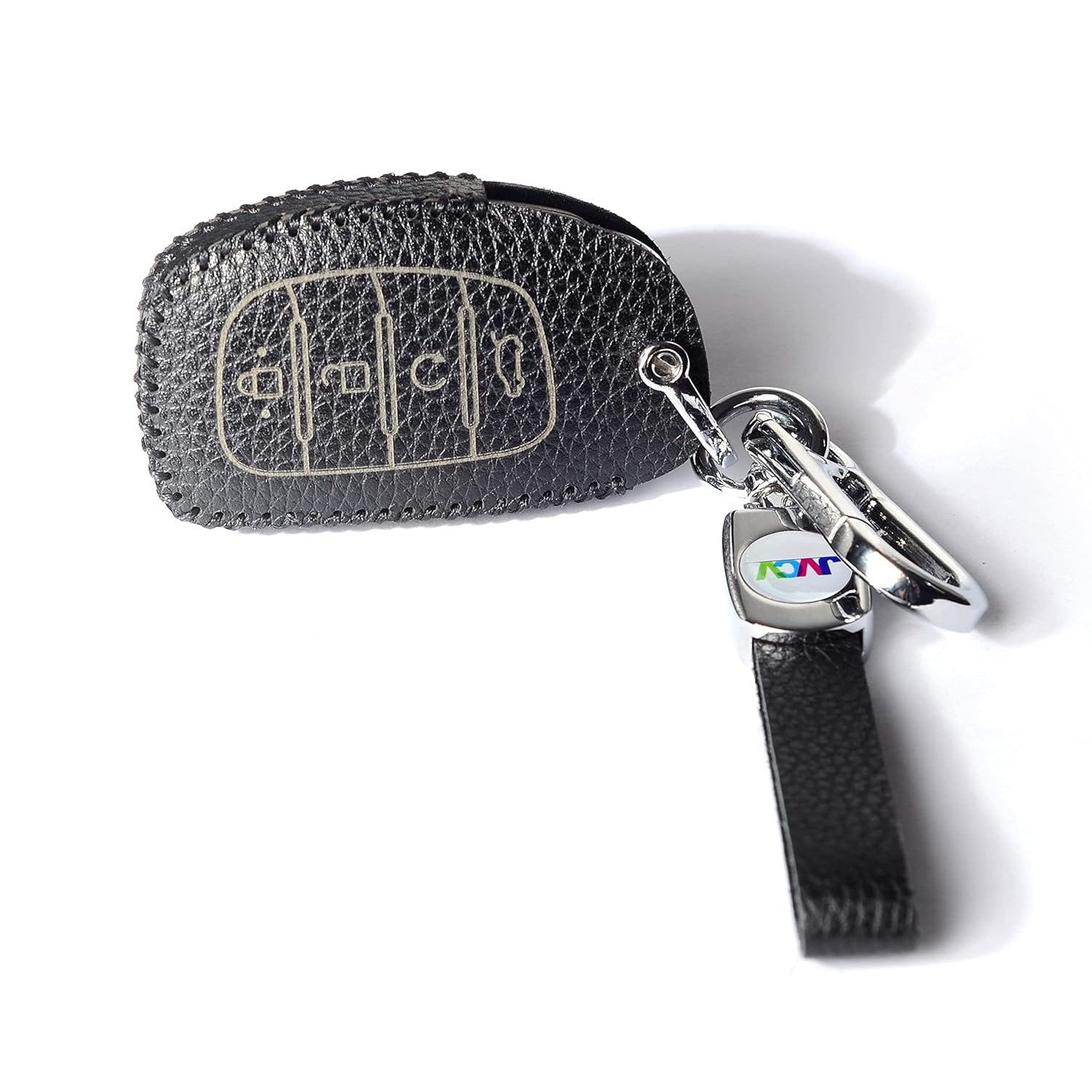 JVCV® Soft Handmade Lychee Pattern Leather Key Cover Compatible with Hyundai Alcazar and Creta 2021 2022 & 2023 Car 4 Button Smart Key with Keychain