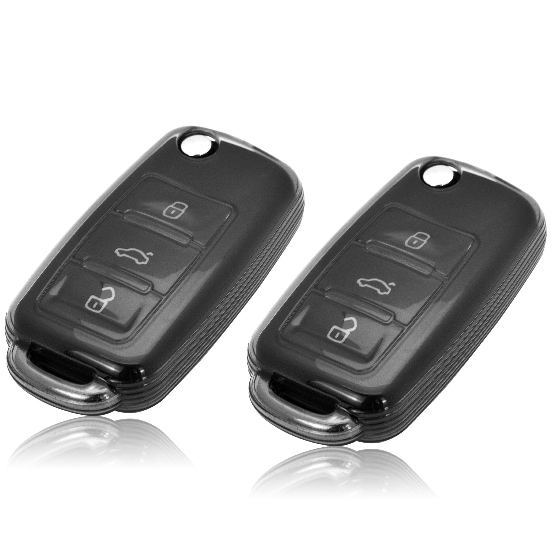 JVCV® Soft TPU Transparent Cover Compatible with Volkswagen Polo Vento Jetta Ameo Passat and Skoda Rapid Laura Superb Octavia Fabia Yeti Folding Key (Transparent Black)
