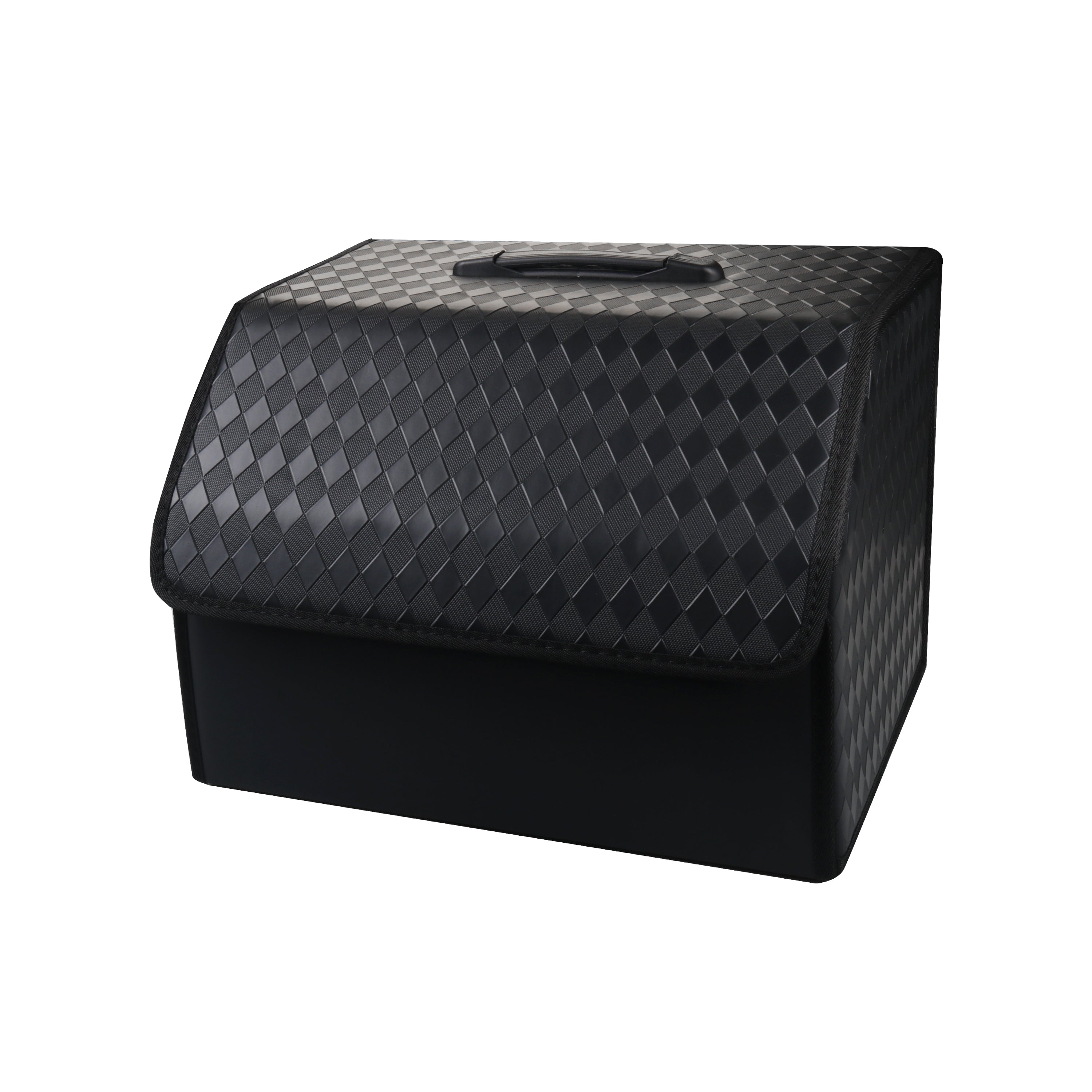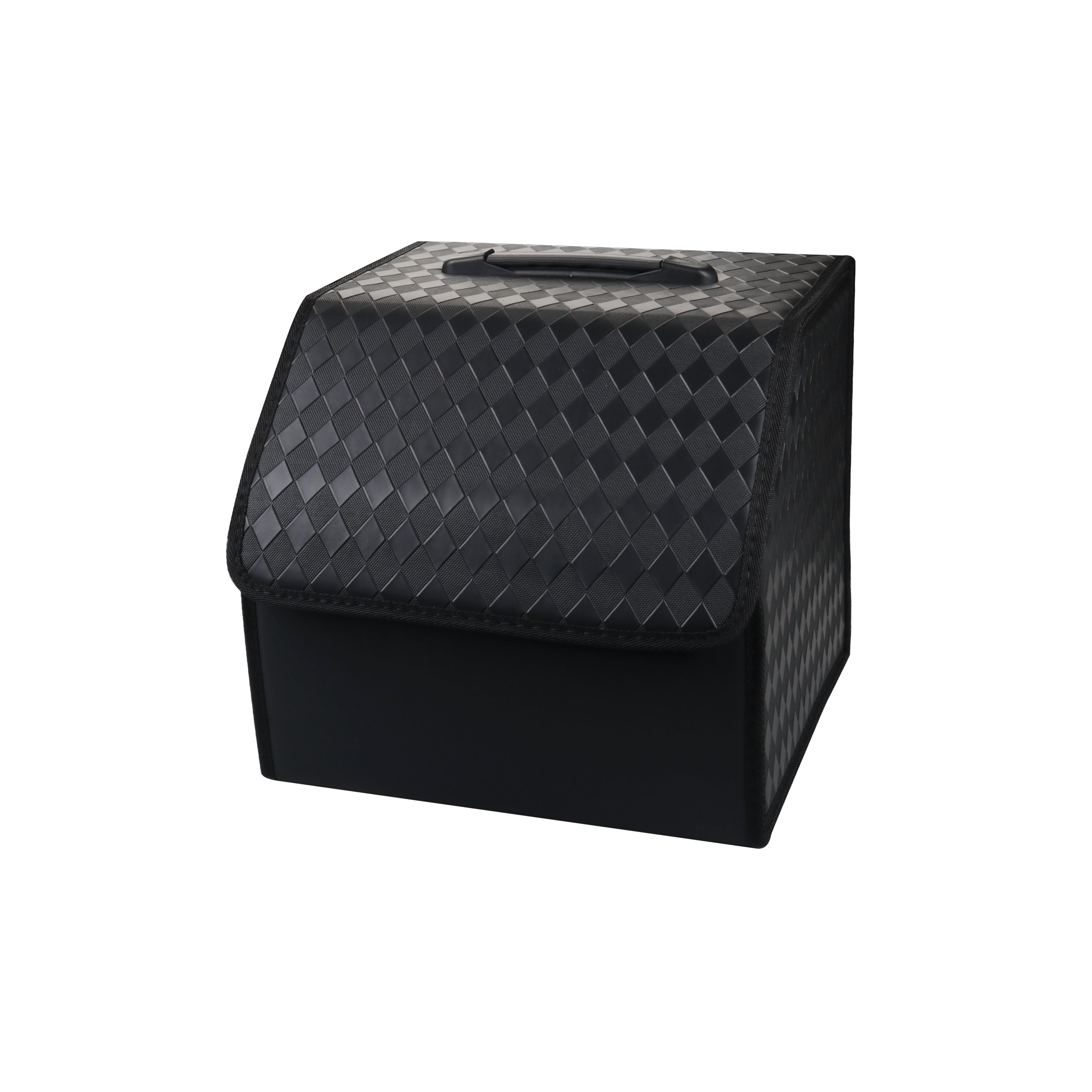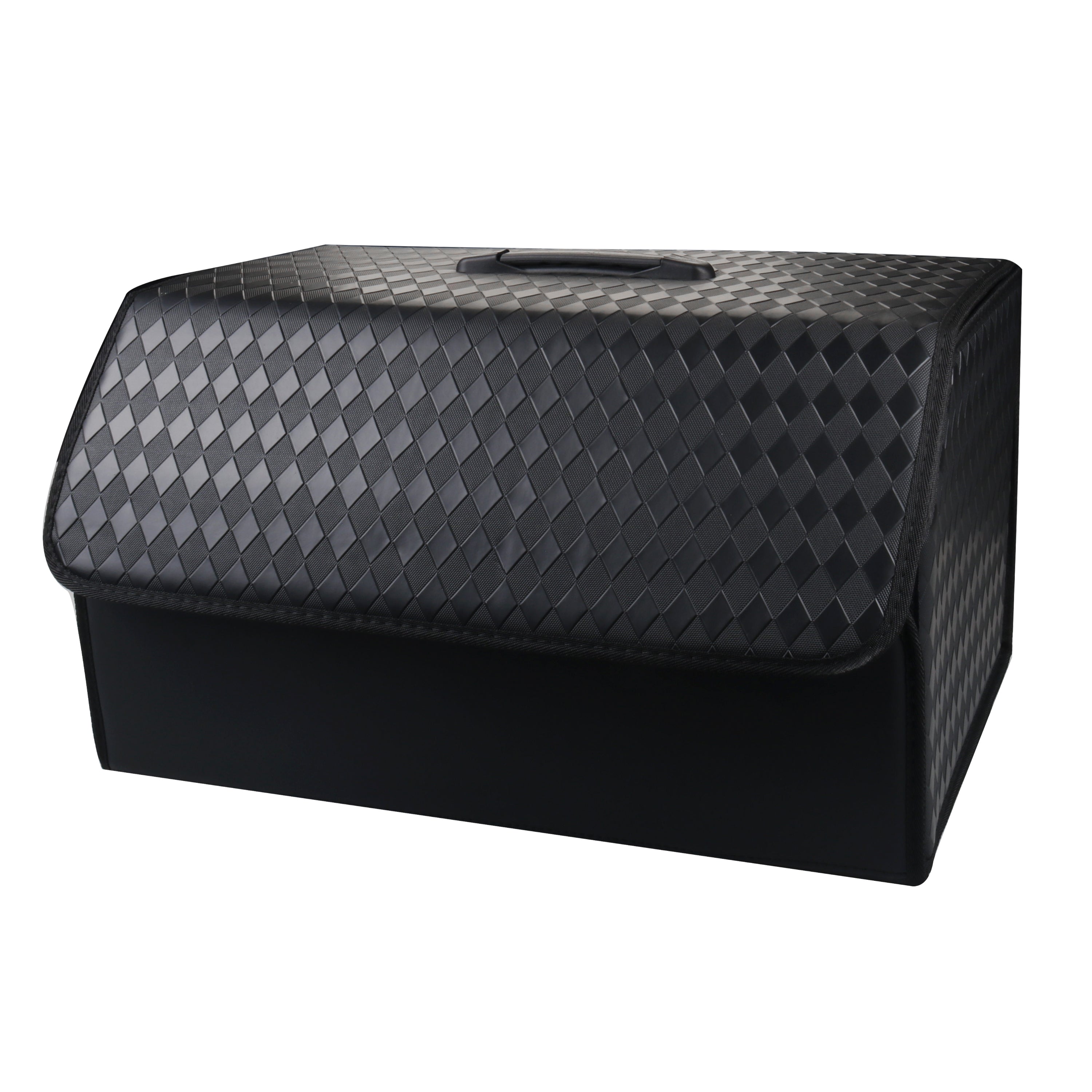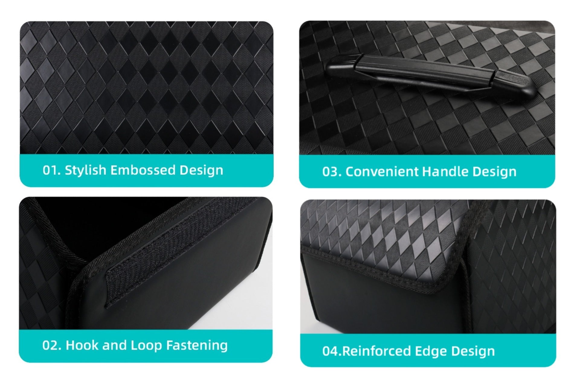 JVCV® Stylish Embossed PU Leather Car Trunk Organizer – Foldable Multipurpose Car Boot Storage Box with Handle