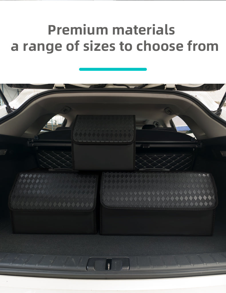 Elevate your car’s interior with the JVCV® Stylish Embossed PU Leather Car Trunk Organizer. Designed for both elegance and function, it keeps your car boot neat, organized, and clutter-free while adding a touch of luxury.