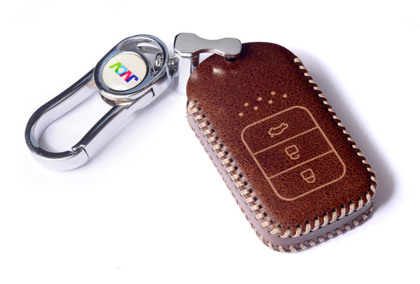 JVCV® Handmade Leather Car Key Cover – Compatible with Honda City, Elevate, Civic, Jazz, Amaze, CR-V, WR-V, BR-V – 3/4 Button Smart Key
