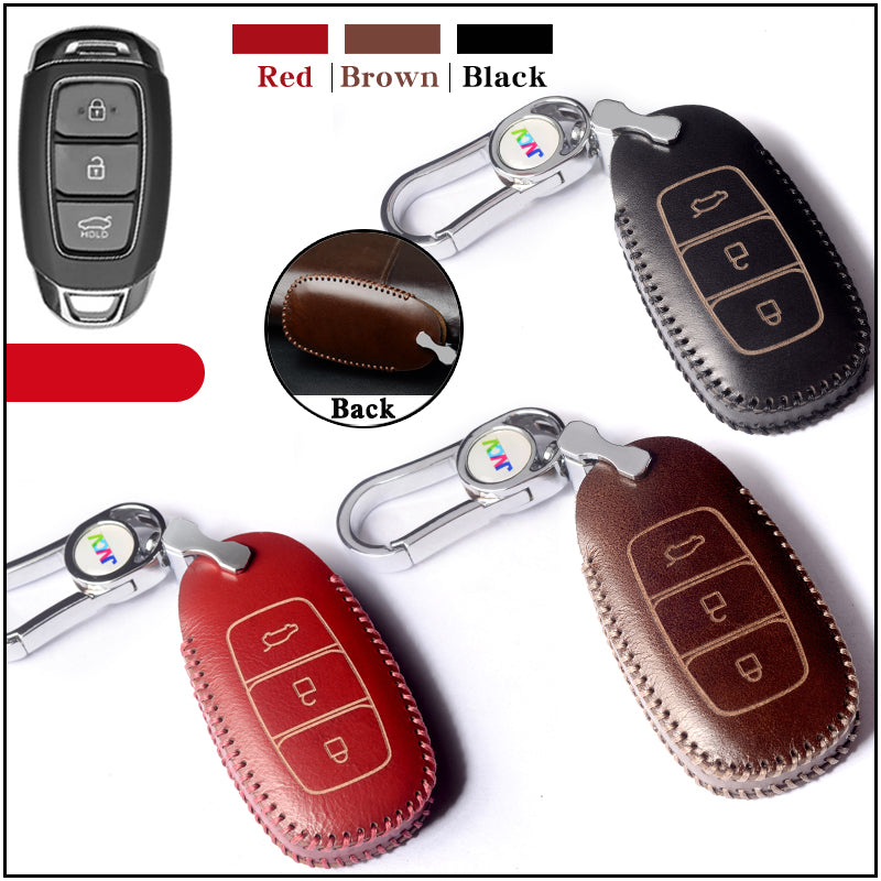 JVCV® Handmade Leather Car Key Cover – Compatible with Hyundai Verna 3 Button Smart Key