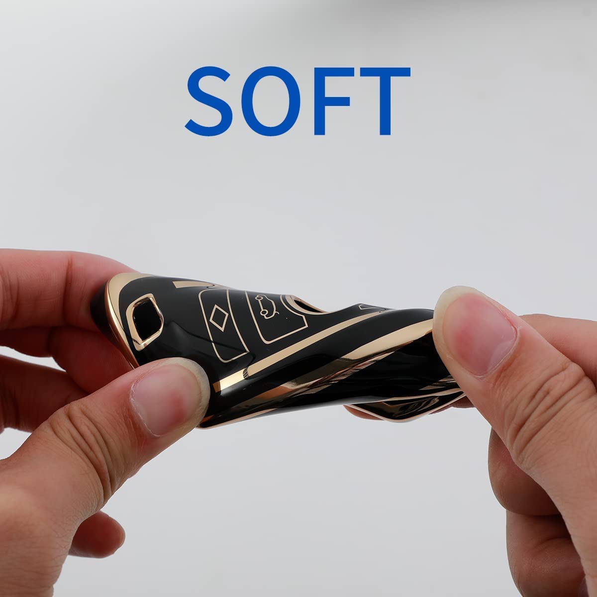 JVCV® Gold Border TPU Key Cover Compatible with BMW X4, X3, 5 Series, 6 Series, 3 Series, 7 Series 4 Button Smart Key (Black)