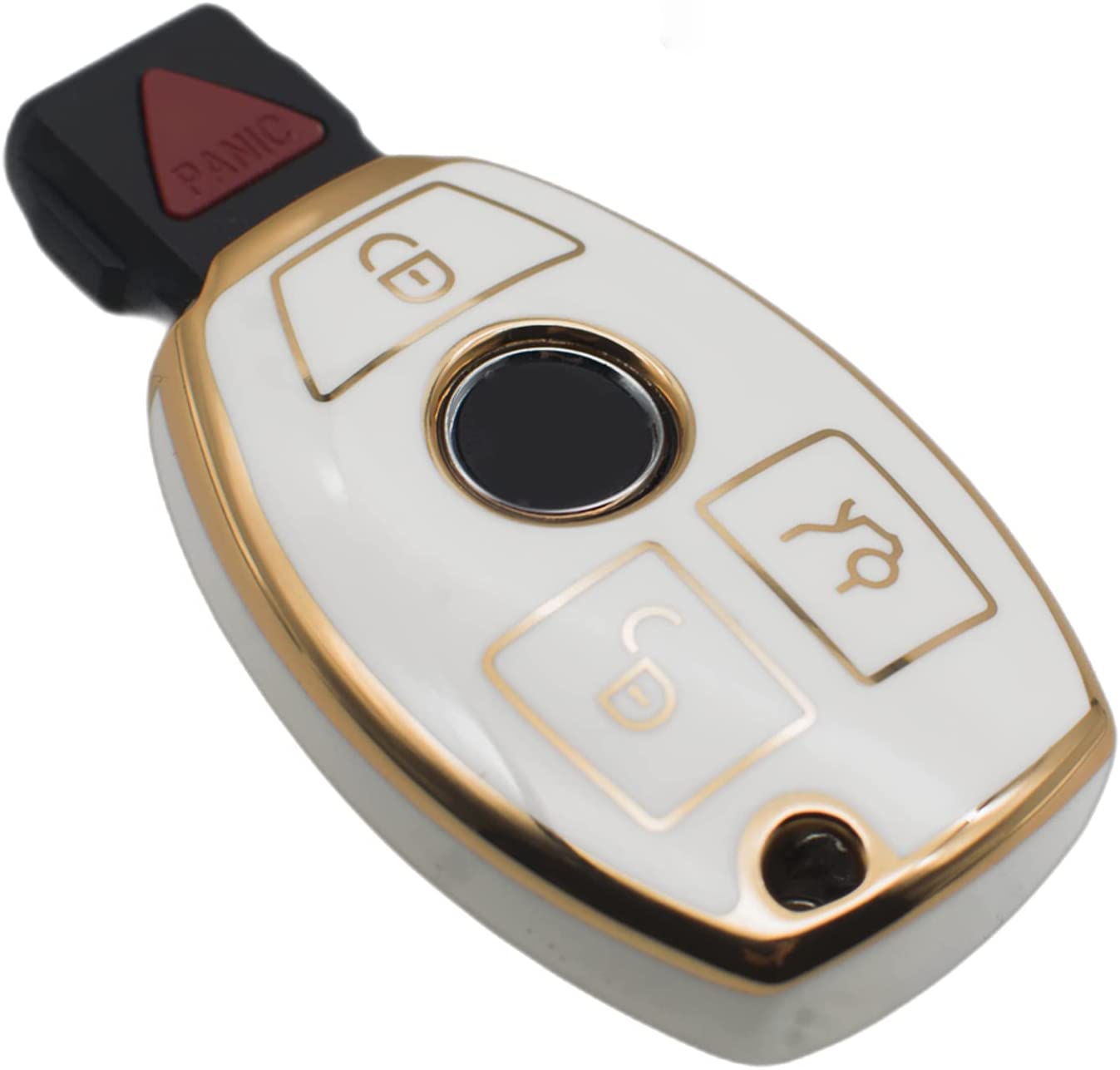 Enhance the luxury and protection of your Mercedes-Benz 3 Button Smart Key with the JVCV® Gold Border TPU Key Cover.
