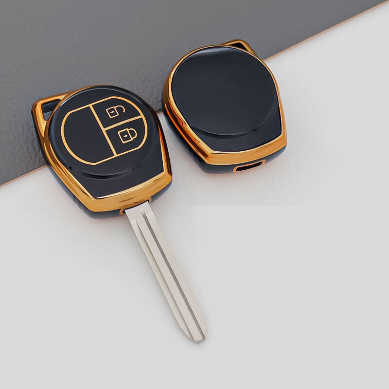 JVCV® Gold Border TPU Key Cover – Compatible with Swift, Ertiga, WagonR, Celerio, Dzire, Alto, Eeco, Brezza, S-Presso, Ignis – 2 Button Remote Key