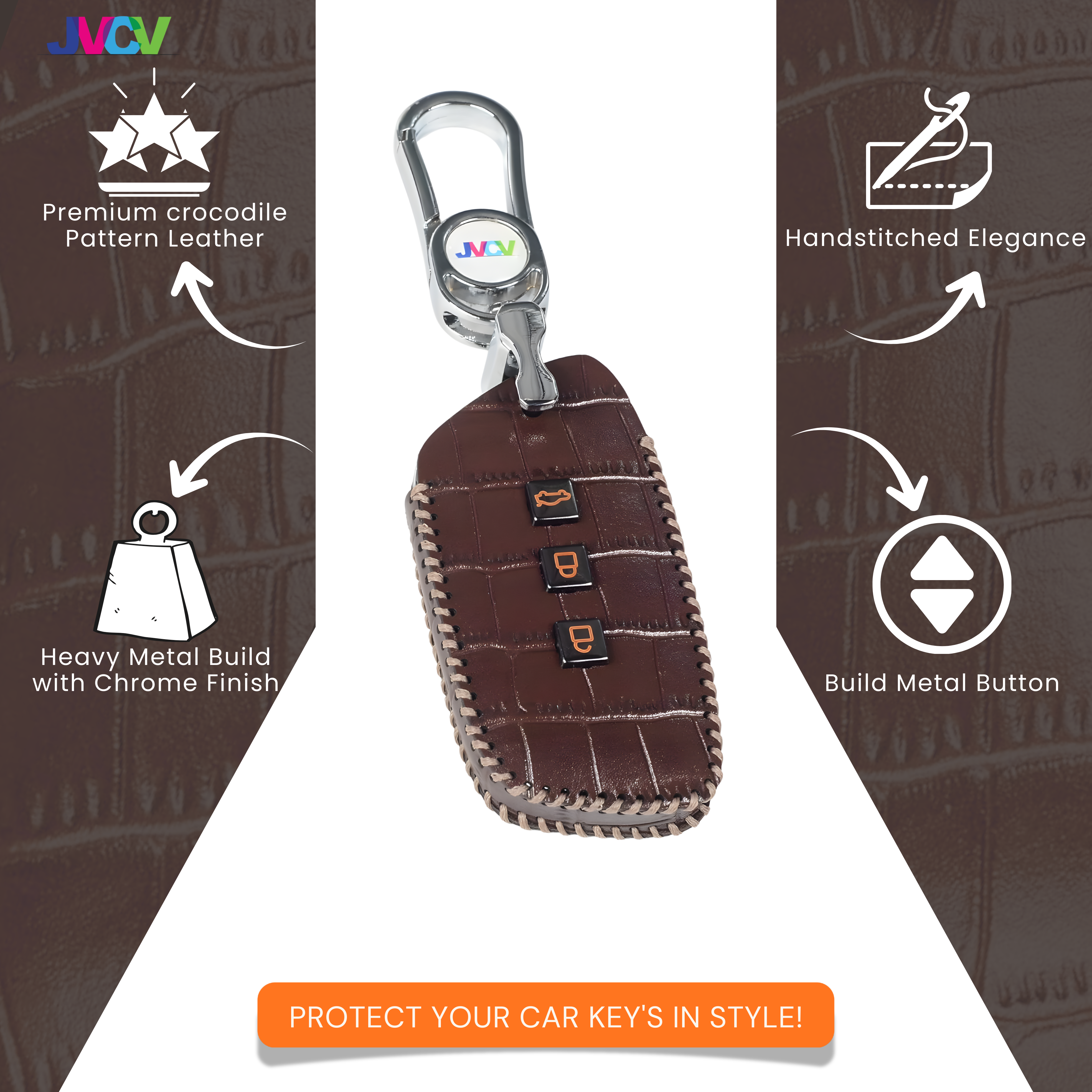 JVCV® Handmade Leather Crocodile Pattern Key Cover – Compatible with New MG Hector, Hector Plus, Windsor & Windsor Pro EV Smart Key