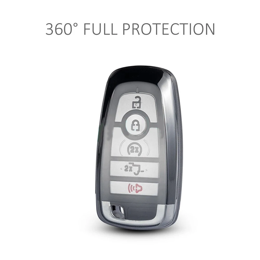 JVCV® Soft TPU Transparent Cover with keychain – Compatible with Ford Keys (Transparent Black)