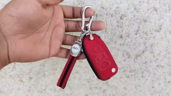 JVCV® Suede Leather Key Cover for Tata Flip Keys – Compatible with Curvv, Tiago, Tigor, Punch, Nexon, Hexa, Safari & More